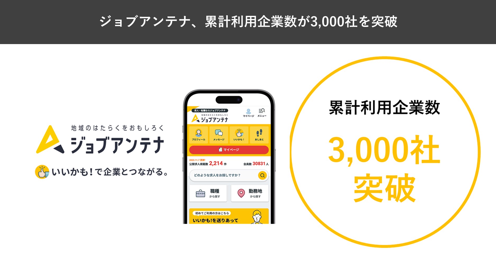 インタラクティブ株式会社(本社:沖縄県宜野湾市、代表取締役社長:臼井 隆秀、以下「インタラクティブ」)が運営する地域特化型の求人マッチングサービス「ジョブアンテナ」は、2025年9月30日(火)に沖縄・北海道・福岡・熊本・京都・鹿児島・愛媛の七拠点における累計利用企業が3,000社を突破したことをお知らせします。